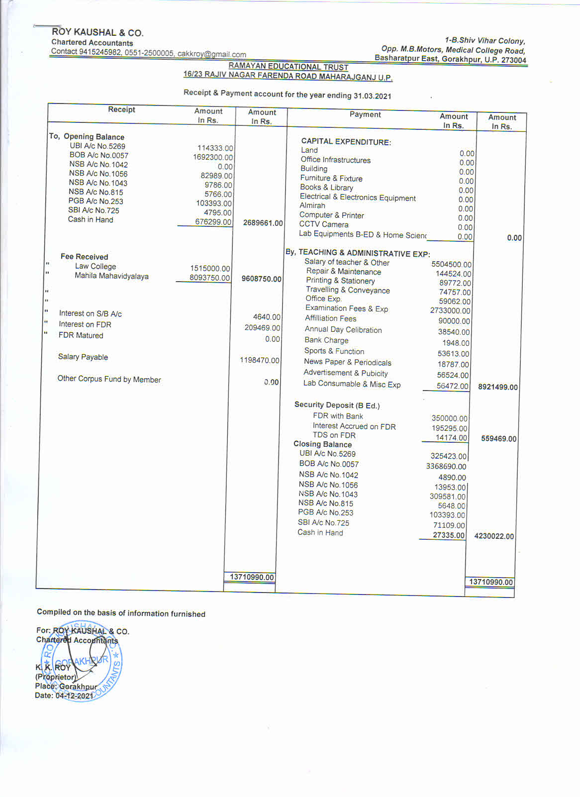 - RECEIPT & PAYMENT